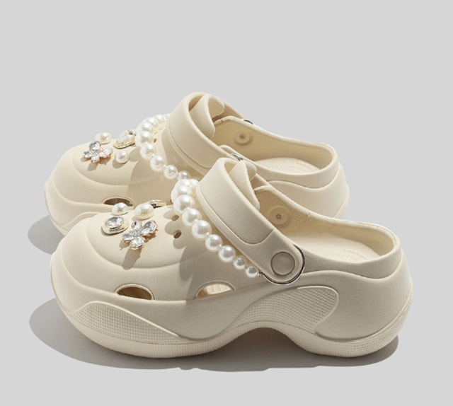 パール スリッパ サンダル レディース ガールズ かわいい 靴 くつ サンダル 女性 歩きやすい 通気性 履きやすい 軽い サンダル 快適 クロックス風 屋外 室内 外 かかと 韓国 雑貨