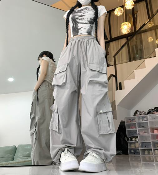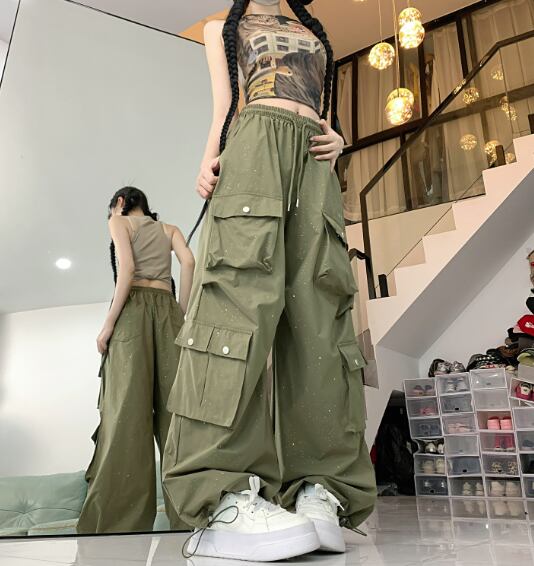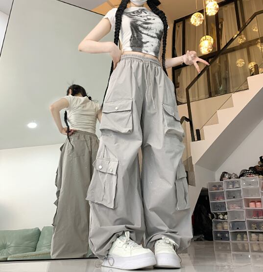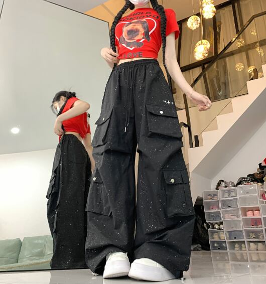 カーゴパンツは、個性的でかっこいい韓国ファッションの要素を取り入れたアイテムです!ゆったりとしたワイドシルエットに高めのハイウエストがスタイルを美しく引き立てます。ゴム入りのウエストで快適なフィット感を実現しており、ダンスや日常使いとしてもぴったりです。太めサイズ展開もあり、大きいサイズの方にも安心してご着用いただけます。実用的なポケット付きで、機能性も抜群です。ヒップホップスタイルにぴったりで、練習着やカジュアルコーディネートにもマッチするこのパンツは、あなたの個性をしっかりと引き立てること間違いなし!さまざまなシーンで活躍するアイテムとして、ワードローブにぜひ加えて欲しい一着です!