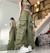 カーゴパンツ パンツ ズボン ボトムス ロング ワイド 太い 太め 大きいサイズ ビッグ ゆったり ハイウエスト ゴム ポケット ダンス 衣装 ヒップホップ HIPHOP レディース ガールズ 個性的 奇抜 かっこいい 韓国ファッション 練習着