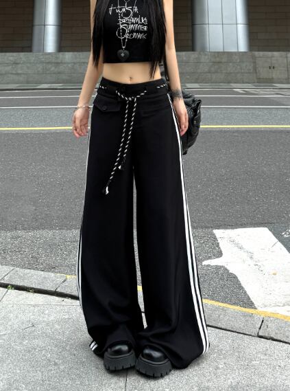 ライン パンツ ズボン ボトムス ロング ワイド 太い 太め 大きいサイズ ビッグ ゆったり ハイウエスト ダンス 衣装 ヒップホップ HIPHOP レディース ガールズ 個性的 奇抜 かっこいい 韓国ファッション