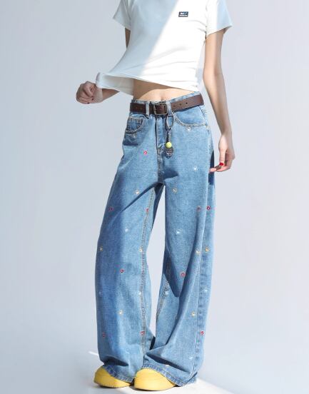「ベルトなし」花柄刺繍体型カバージーンズワイドパンツは、ゆったりとした快適な着心地と華やかなデザインが魅力のアイテムです!ハイウェスト仕様により、ウエストを引き締めつつ、ボディラインを自然にカバーし、スタイルを美しく見せてくれる一着です。太めのデニム生地は、カジュアルな日常使いから特別なシーンまで幅広く対応し、韓国スタイルの個性的な魅力を演出します!シンプルなデザインに花柄の刺繍がアクセントとなり、かわいらしくも派手すぎないおしゃれを楽しめます。これを着用することで、あなたのカジュアルコーデがさらに引き立ち、日々のファッションがもっと楽しむことができるでしょう!