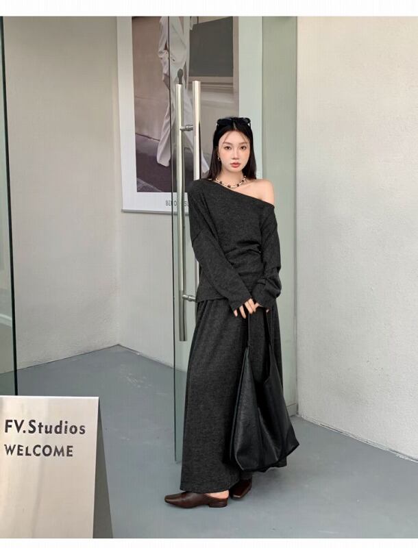 上下セット 2点セット フリル 切り替え スリム 着痩せ シンプル