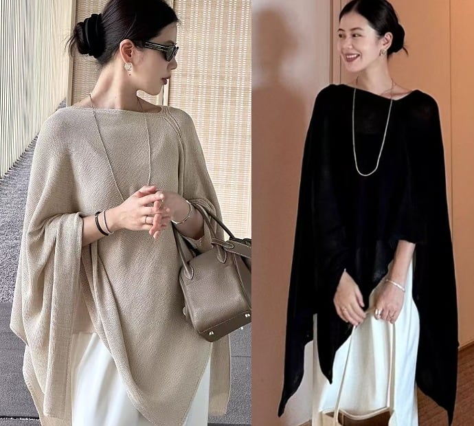 全2色 トップス ポンチョ風 アシンメトリー 切り替え 体型カバー 着痩せ カットソー カジュアル