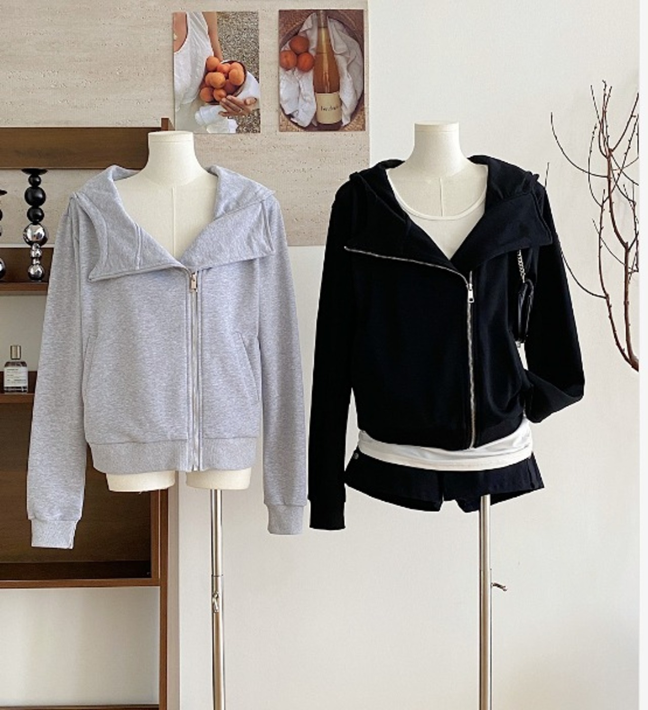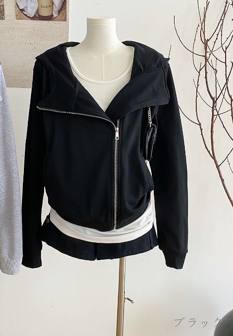 全2色 スウェット トレーナー 長袖 切り替え スリム 着痩せ 帽子付き シンプル