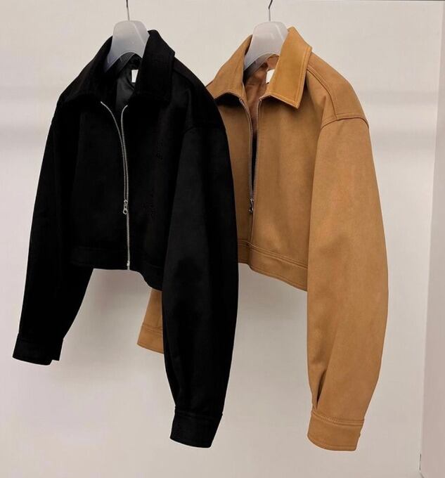 全2色 ジャケット ブルゾン ショット丈 長袖 切り替え 体型カバー 着痩せ シンプル