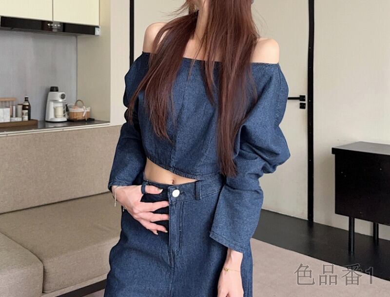 長袖トップス ショット丈 切り替え 体型カバー 着痩せ シンプル