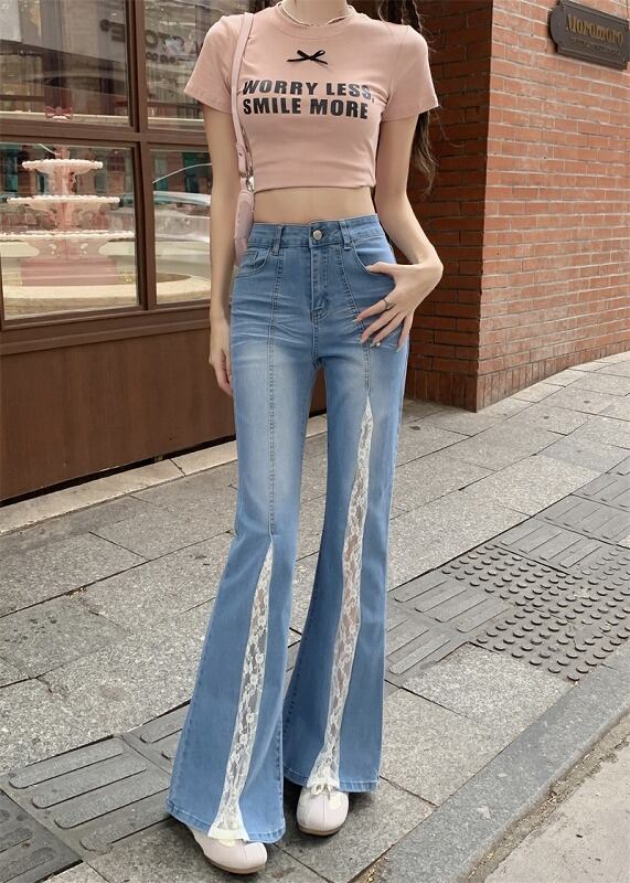 Gパン ジーパン ジーンズ ハイウエスト 切り替え スリム 着痩せ デニム シンプル