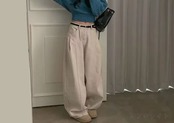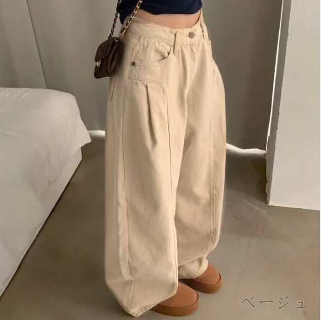 全3色 パンツ 切り替え 体型カバー 着痩せ シンプル