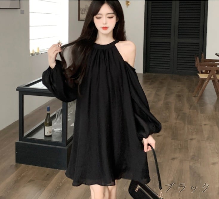 全2色 ワンピース フリル オフショルダー 切り替え 体型カバー 着痩せ 【大きいサイズあり】