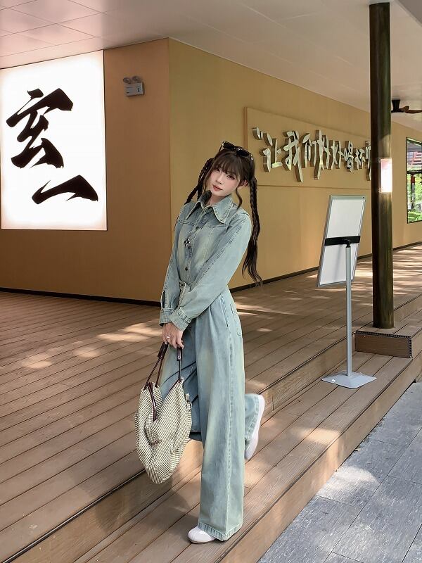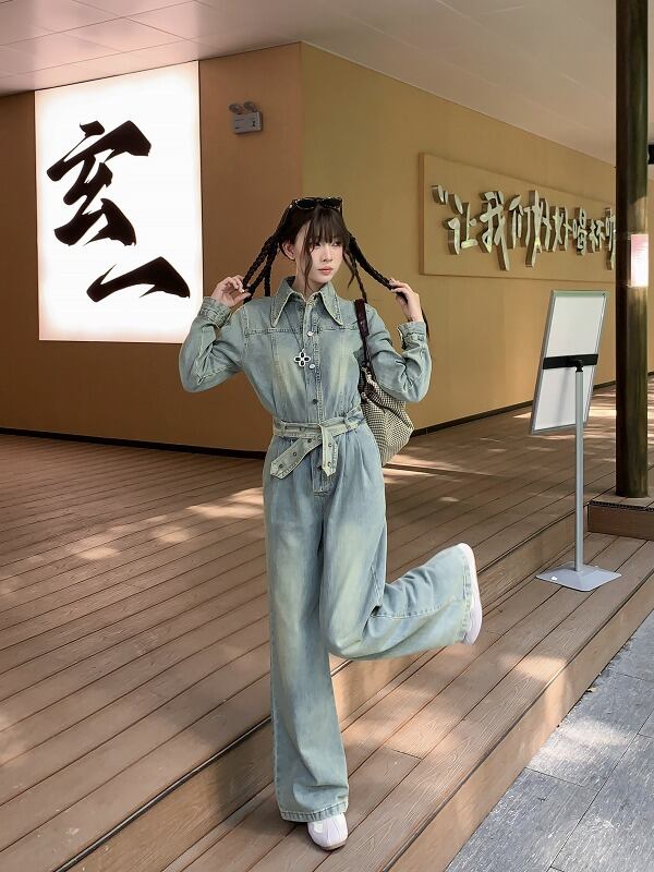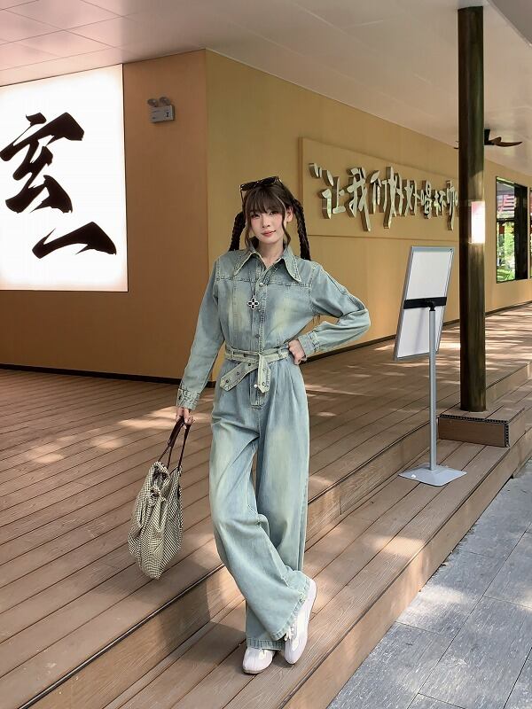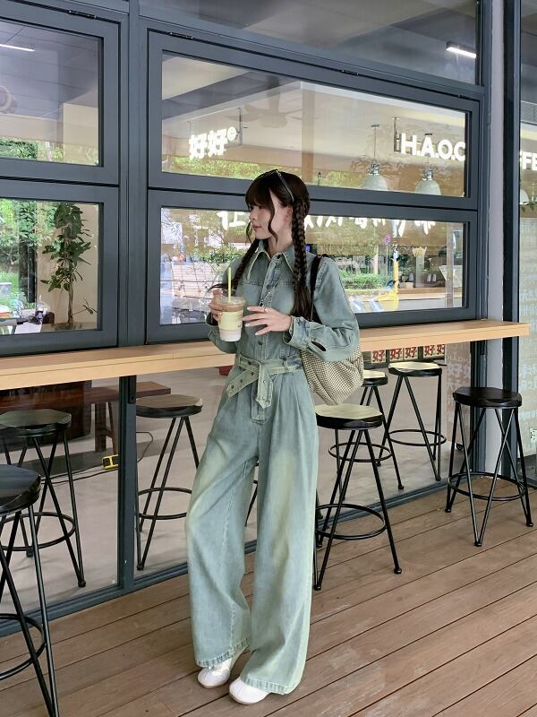 オールインワン 切り替え スリム 着痩せ デニム シンプル