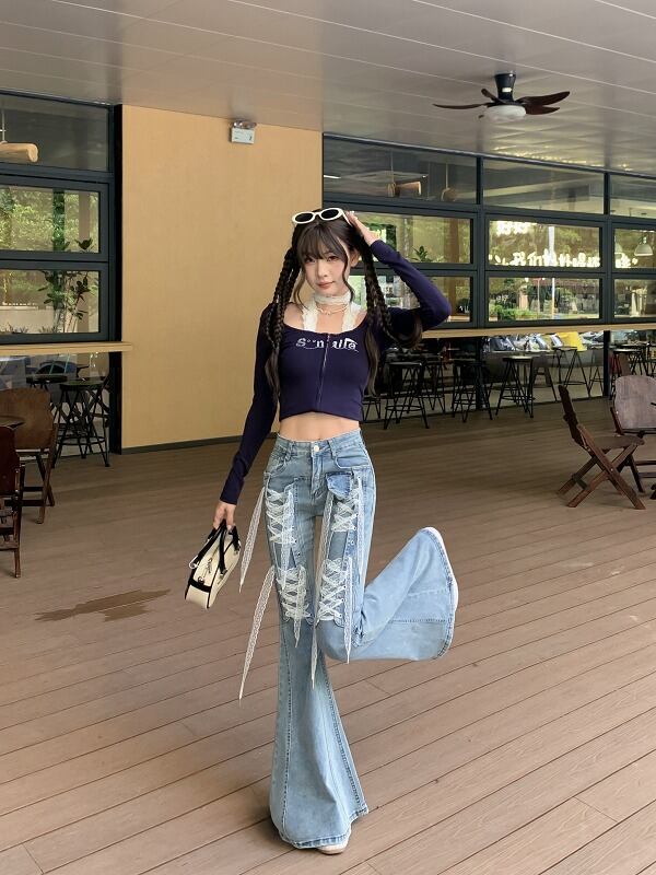 Gパン ジーパン ジーンズ 切り替え スリム 着痩せ デニム シンプル