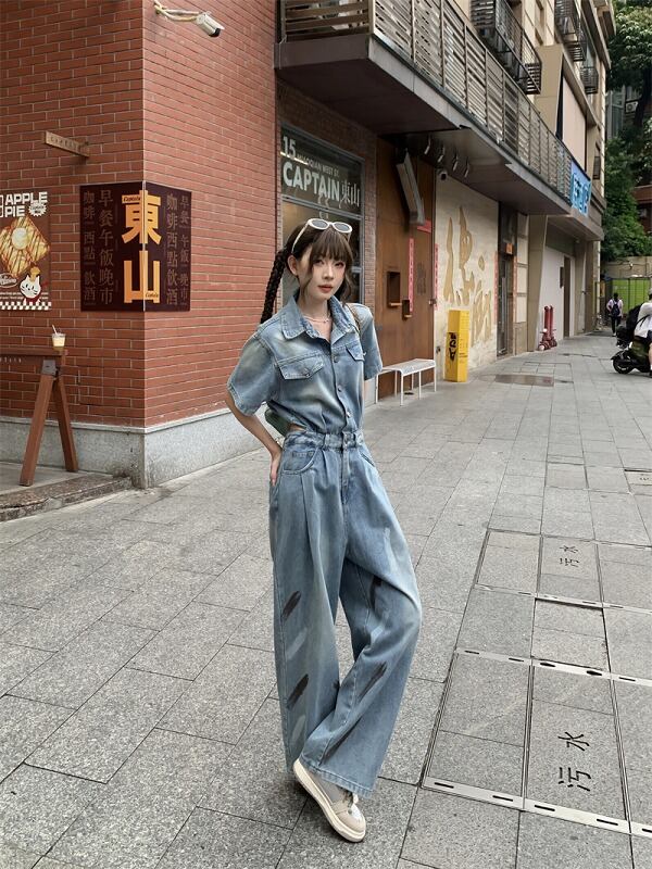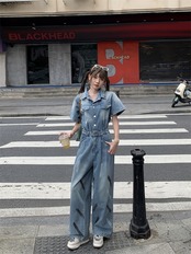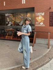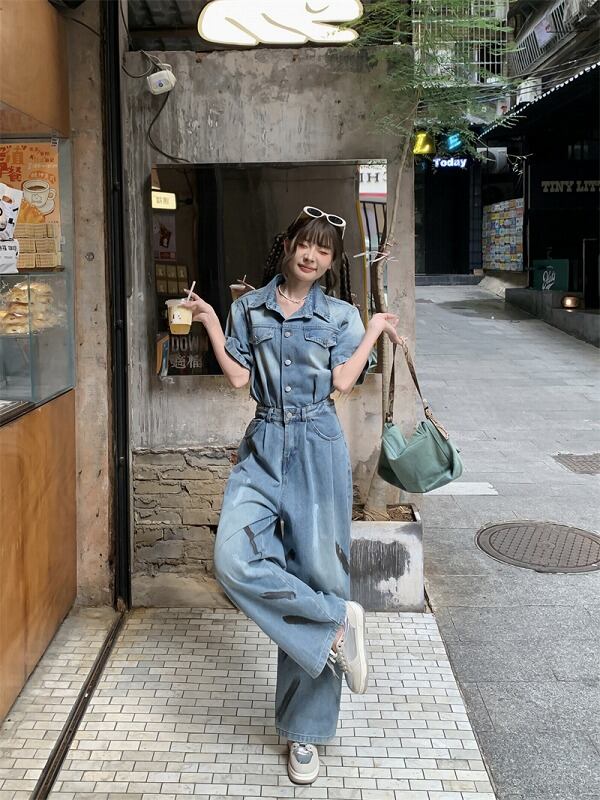 オールインワン 切り替え 体型カバー 着痩せ デニム シンプル
