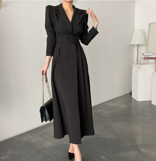 全3色 長袖ワンピース フリル 切り替え スリム 着痩せ sweet系