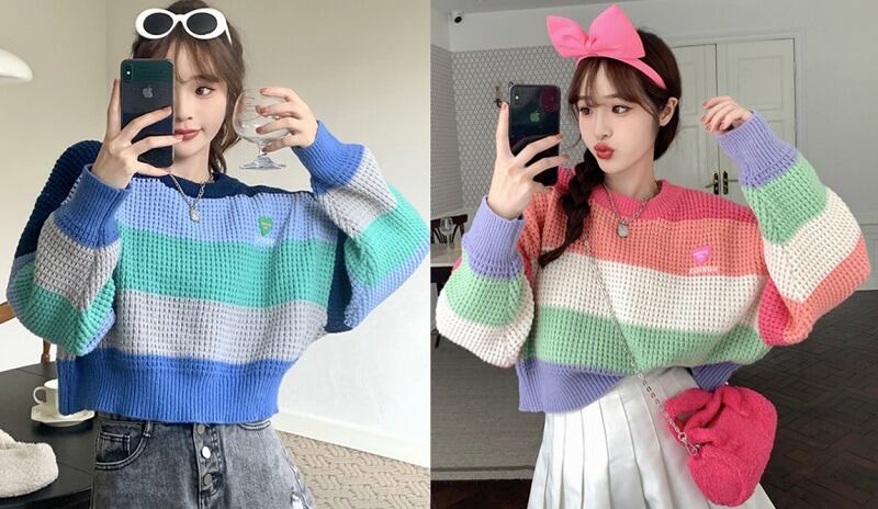 全2色 ニット 切り替え バイカラー 体型カバー 着痩せ カットソー カジュアル