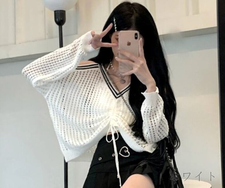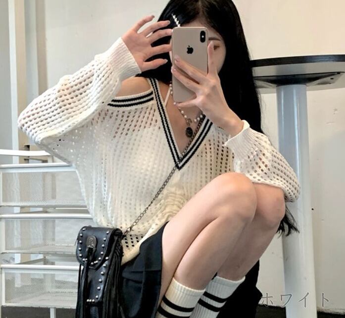 全2色 トップス 日焼け止め 透け編み 薄手 体型カバー 着痩せ カジュアル