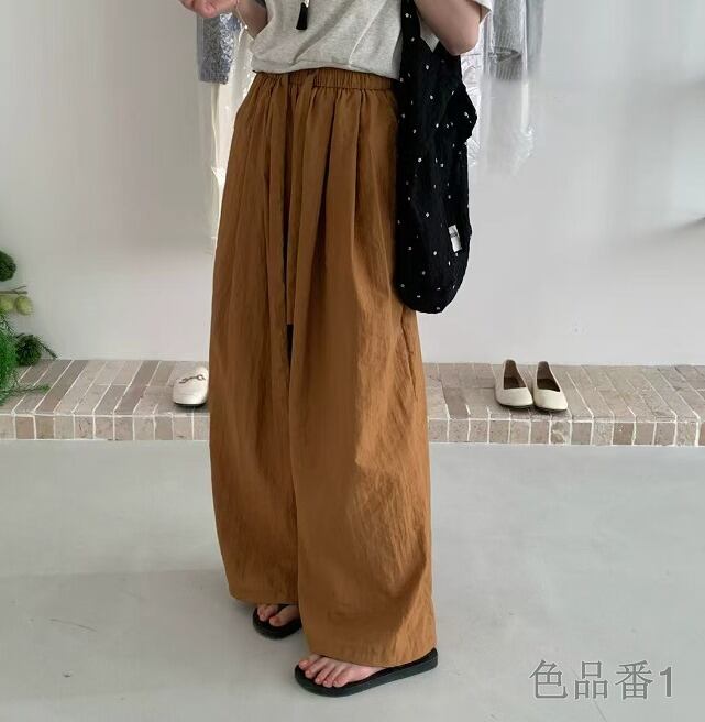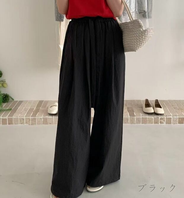 全4色 ワイド バギーパンツ 切り替え 体型カバー 着痩せ カジュアル