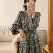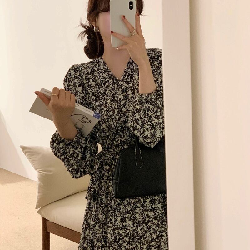 ワンピース フリル 切り替え バイカラー スリム 着痩せ カジュアル