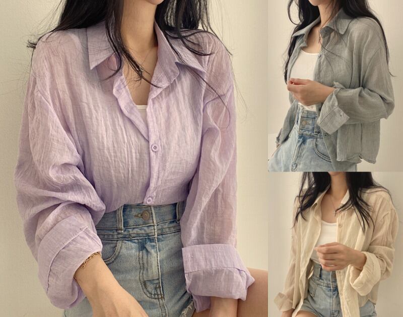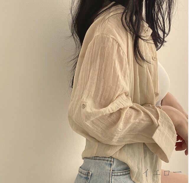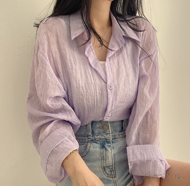 全4色 長袖シャツ 薄手 切り替え 体型カバー 着痩せ カジュアル