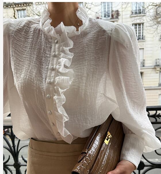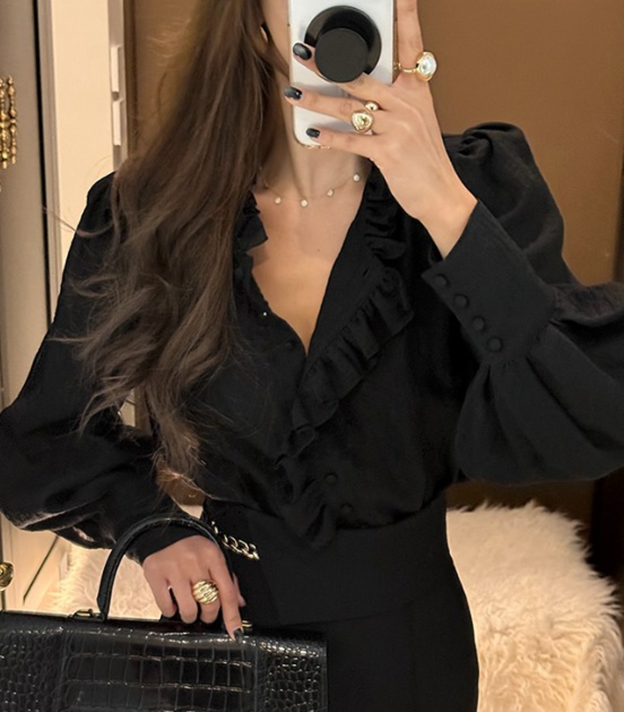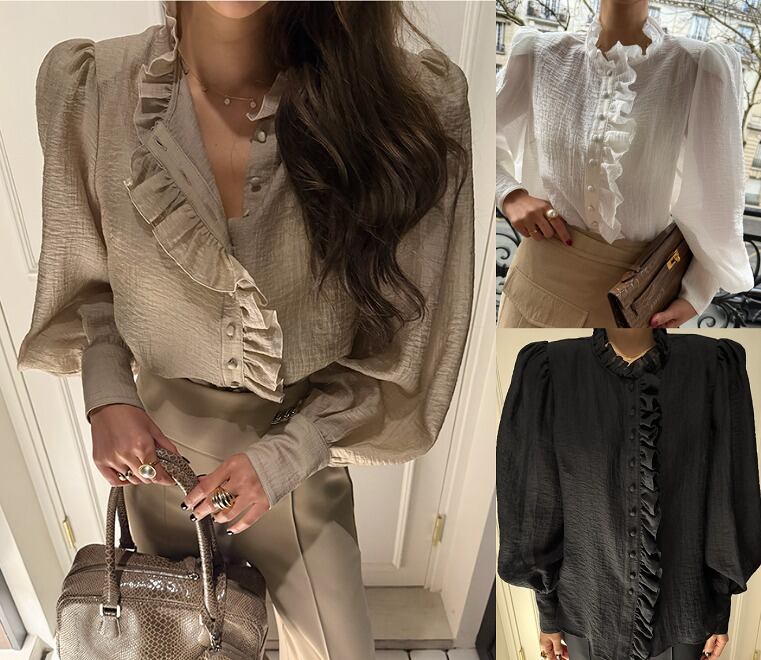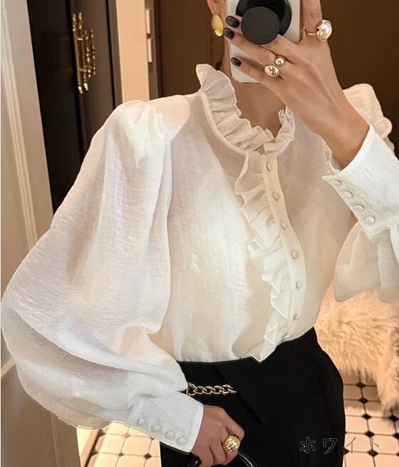 全3色 シャツ ブラウス フリル 切り替え 体型カバー 着痩せ sweet系