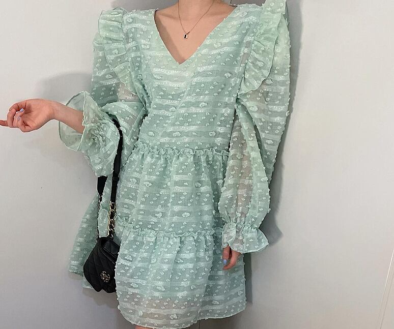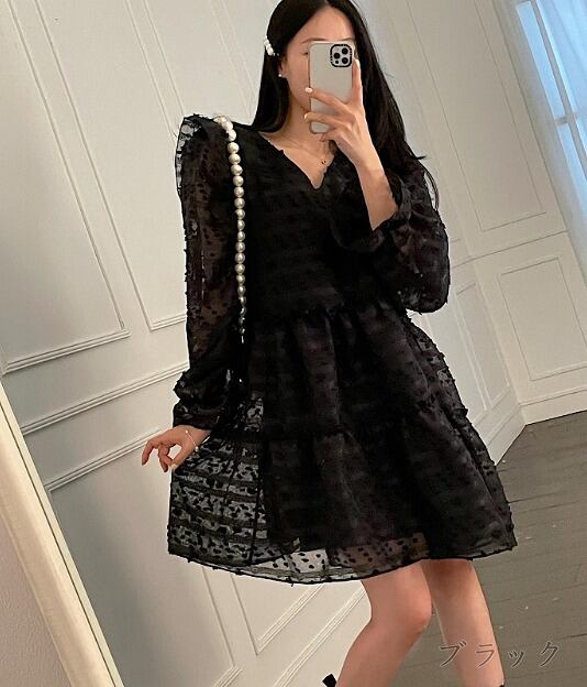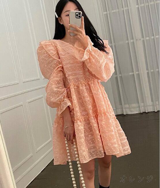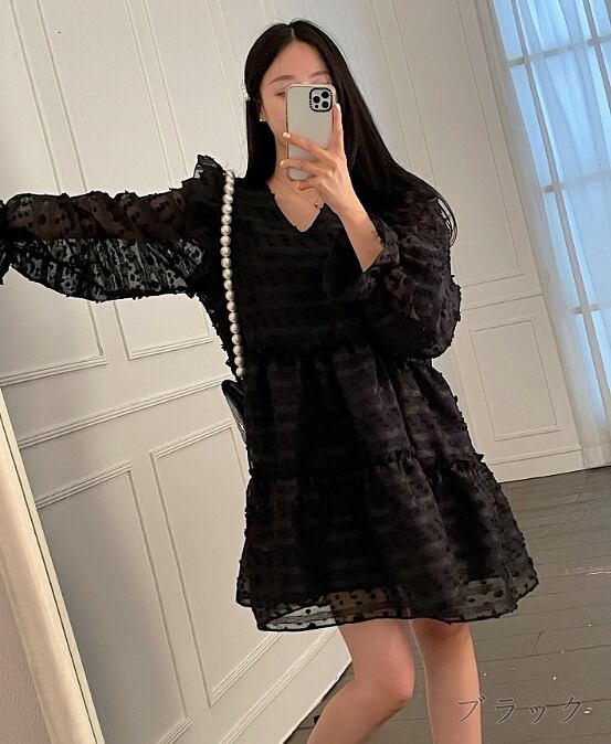 全4色 ワンピース フリル 切り替え 体型カバー 着痩せ sweet系
