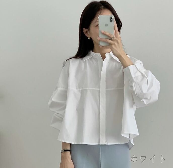 全2色 シャツ ブラウス フリル 切り替え 体型カバー 着痩せ sweet系