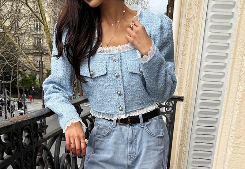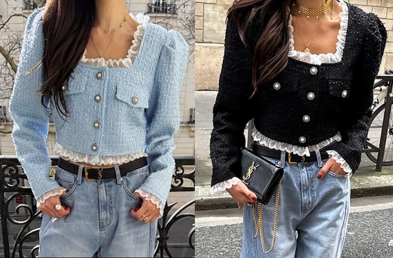 全2色 カーディガン ショット丈 フリル 切り替え スリム 着痩せ シンプル