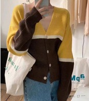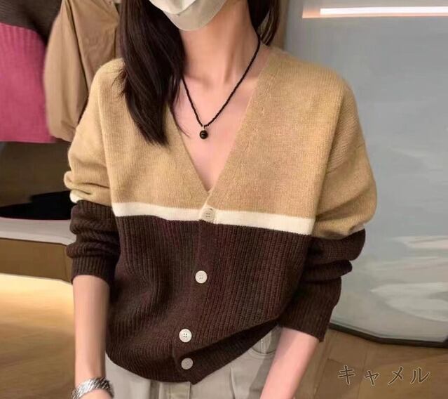 全4色 ニット Vネック 切り替え バイカラー 体型カバー 着痩せ カットソー カジュアル