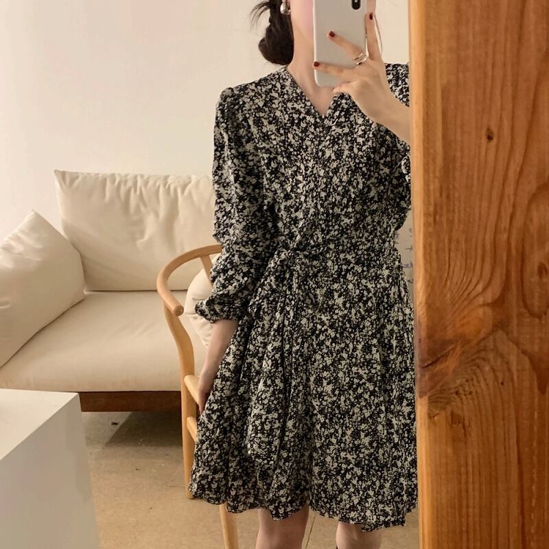 ワンピース フリル 切り替え バイカラー スリム 着痩せ カジュアル