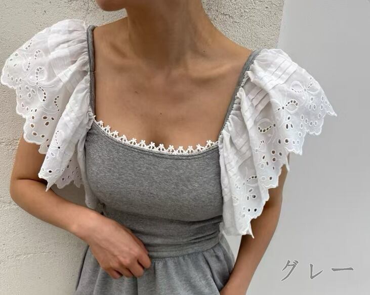 全3色 トップス フリル 切り替え スリム 着痩せ カジュアル