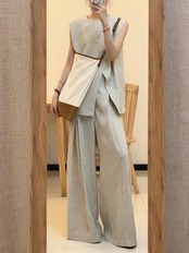 上下セット 2点セット 切り替え 体型カバー 着痩せ カジュアル