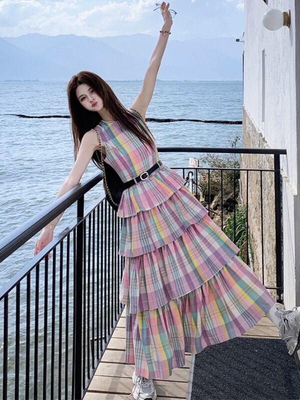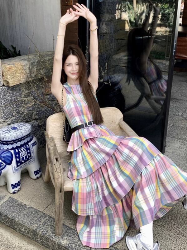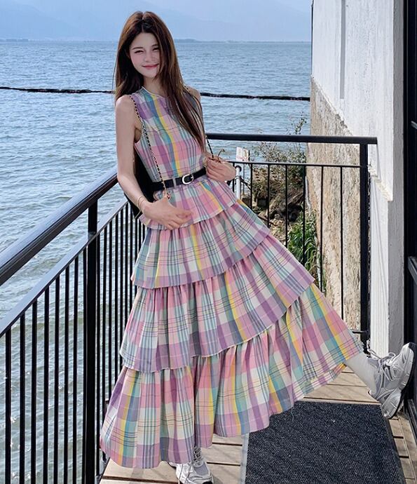 ノースリーブワンピース フリル 切り替え バイカラー スリム 着痩せ sweet系