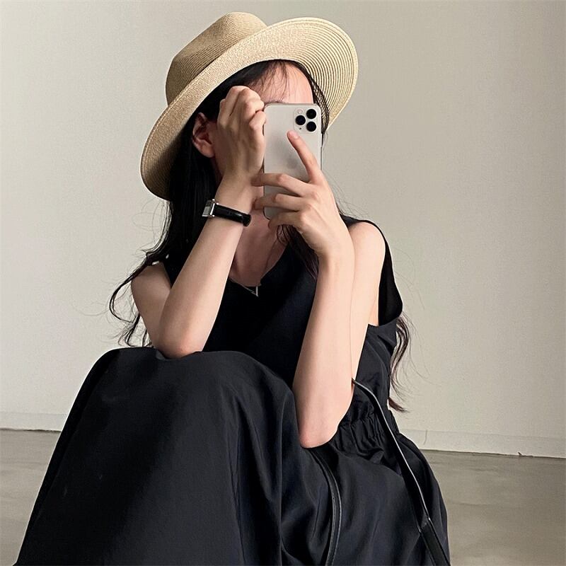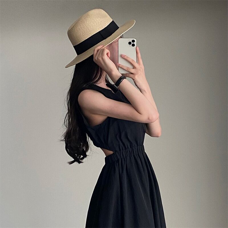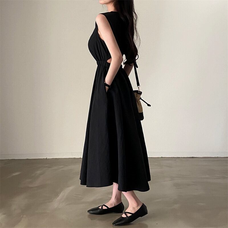 ノースリーブワンピース フリル 切り替え スリム 着痩せ シンプル