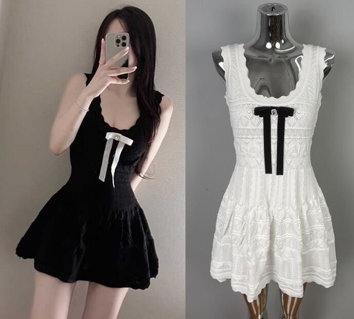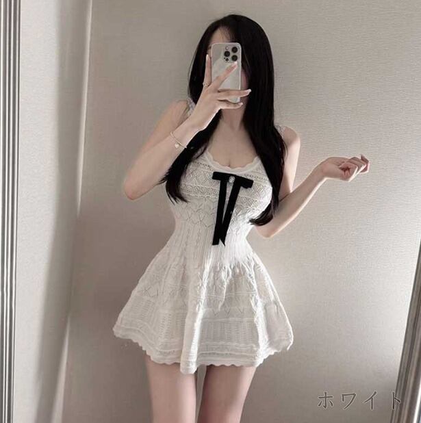全2色 ノースリーブワンピース フリル 切り替え スリム 着痩せ sweet系