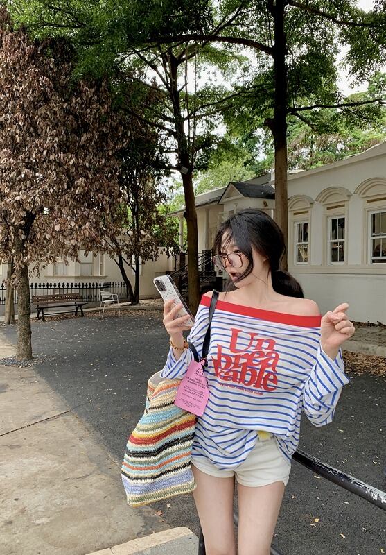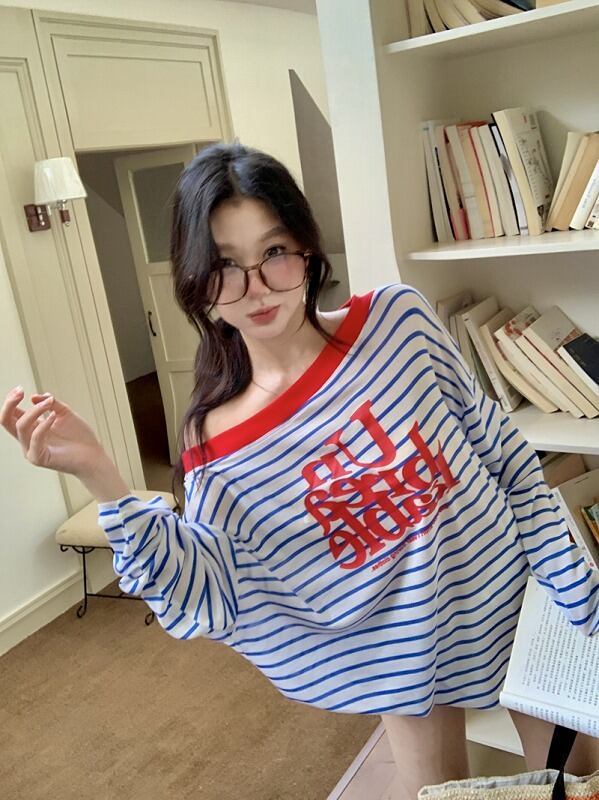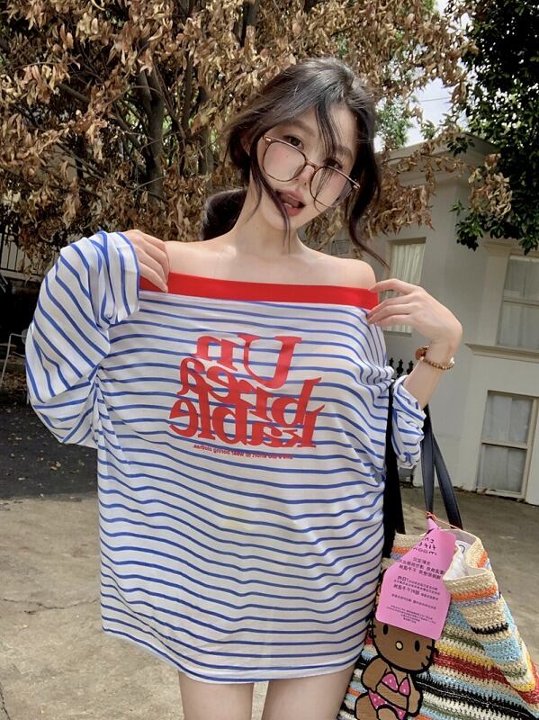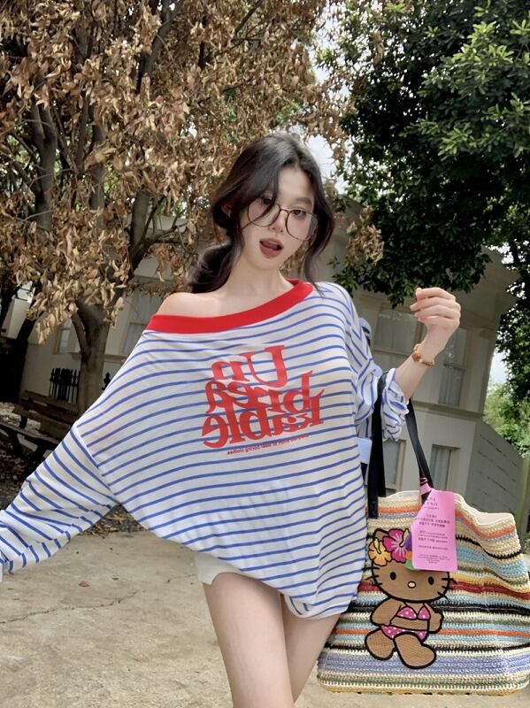長袖Tシャツ 日焼け止め 切り替え バイカラー 体型カバー 着痩せ ボーダー柄 カジュアル