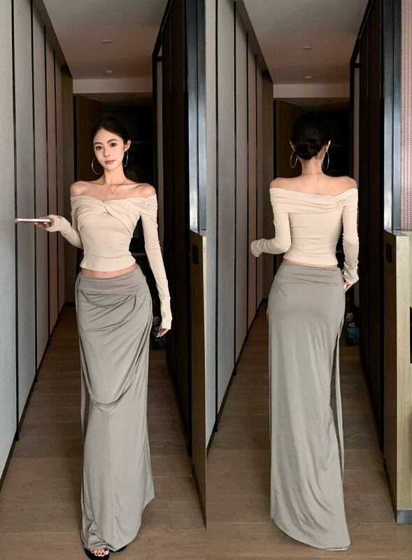 スカート アシンメトリー フリル 切り替え スリム 着痩せ シンプル
