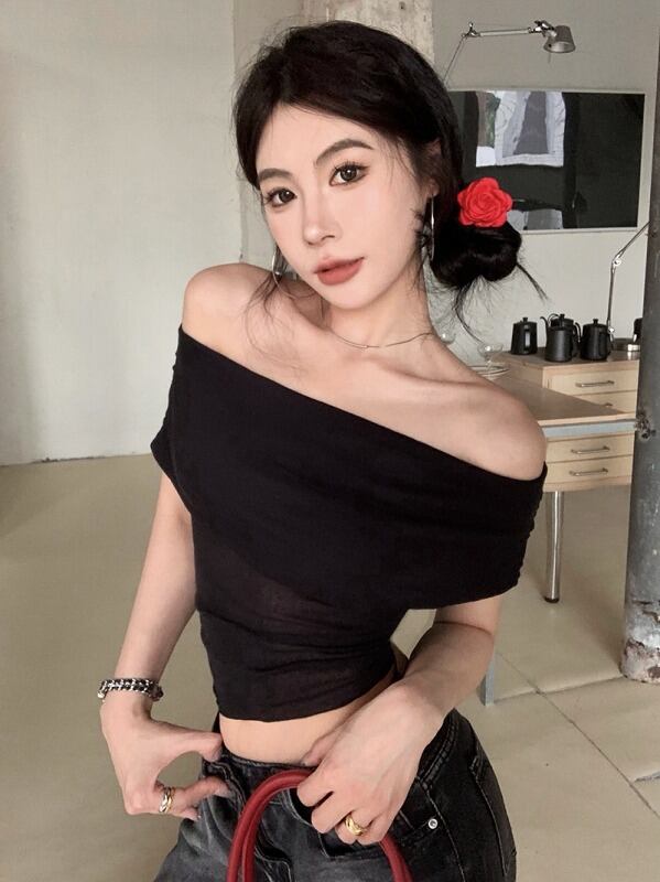 全2色 トップス 切り替え スリム 着痩せ シンプル