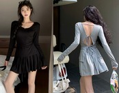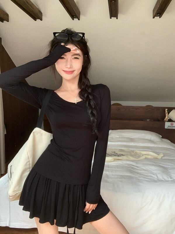 全2色 上下セット 2点セット フリル 切り替え スリム 着痩せ カジュアル