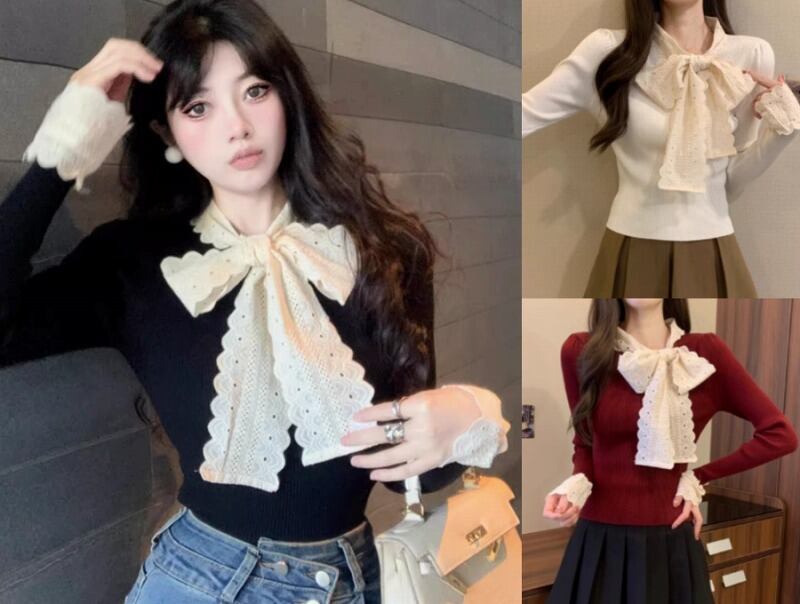 全3色 長袖トップス 切り替え スリム 着痩せ sweet系