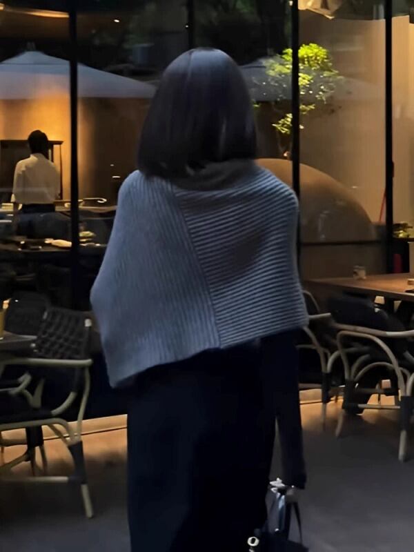 トップス ポンチョ風 アシンメトリー 切り替え 体型カバー 着痩せ カジュアル