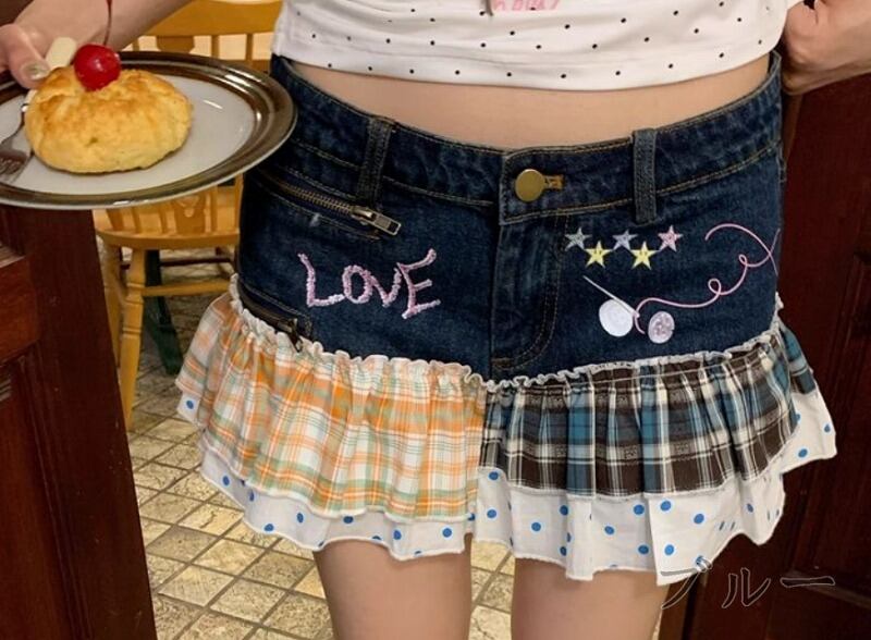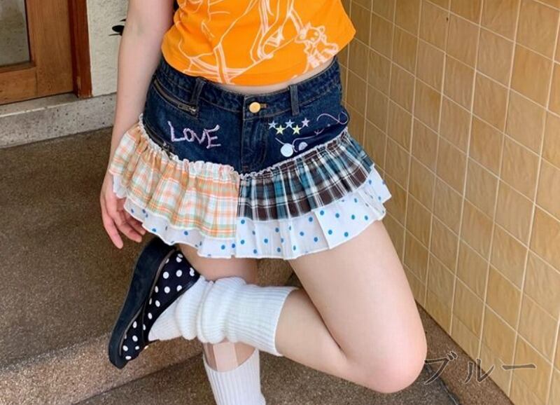 デニムショートパンツ ショーパン ジーパン フリル 切り替え バイカラー 体型カバー 着痩せ デニム swee