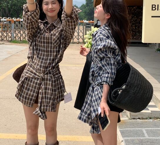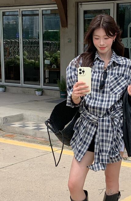 全2色 シャツ ブラウス 切り替え バイカラー 体型カバー 着痩せ チェック柄 カジュアル