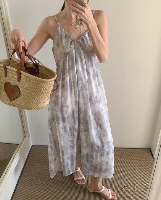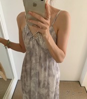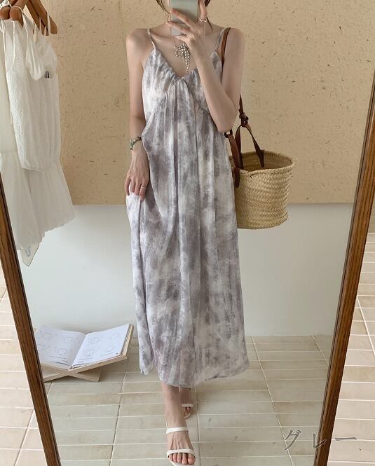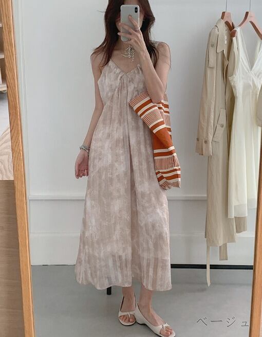 全2色 キャミソールワンピース フリル 切り替え バイカラー 体型カバー 着痩せ カジュアル