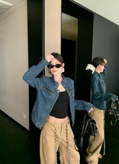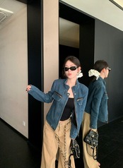 Gジャン ジージャン ジーンズ 長袖 切り替え 体型カバー 着痩せ デニム シンプル