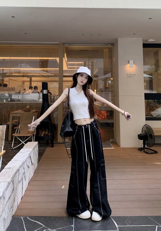 パンツ 切り替え 体型カバー 着痩せ カジュアル
