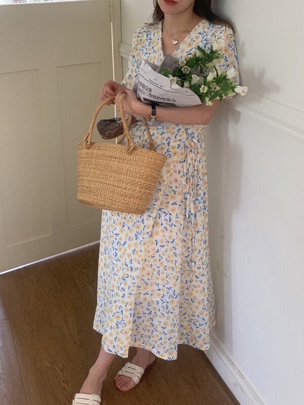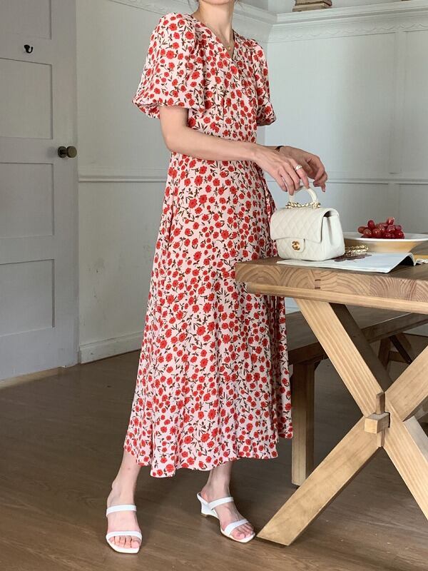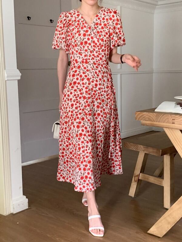 全2色 ワンピース フリル 切り替え バイカラー スリム 着痩せ sweet系