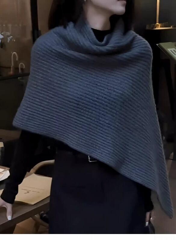 トップス ポンチョ風 アシンメトリー 切り替え 体型カバー 着痩せ カジュアル