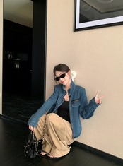 Gジャン ジージャン ジーンズ 長袖 切り替え 体型カバー 着痩せ デニム シンプル
