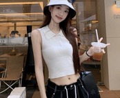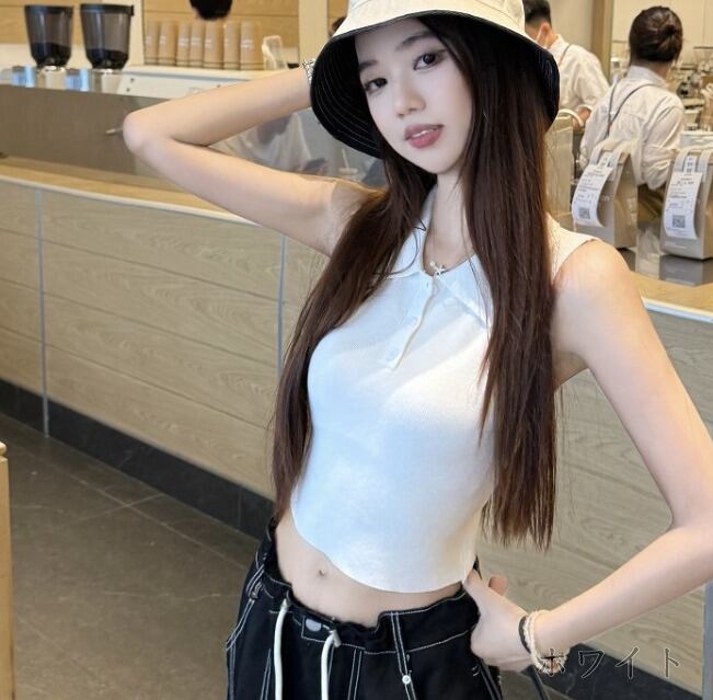 トップス ショット丈 切り替え スリム 着痩せ シンプル