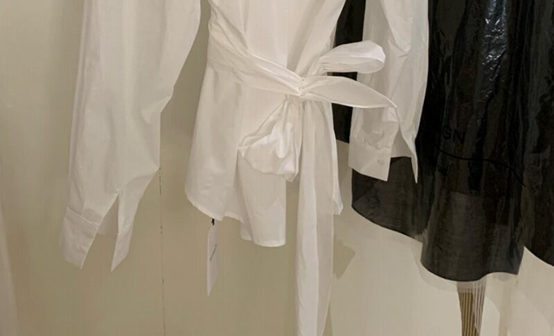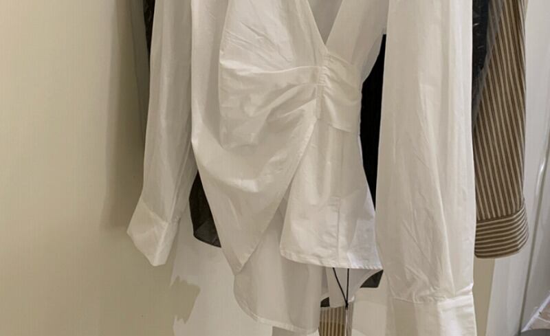 全3色 シャツ ブラウス シャーリング 切り替え スリム 着痩せ シンプル
