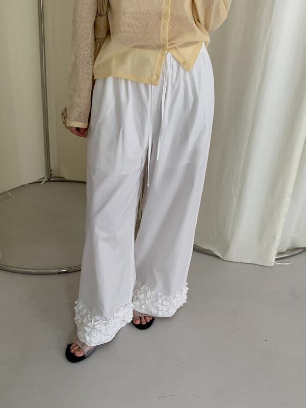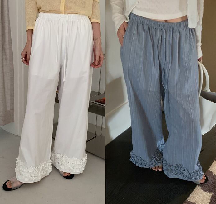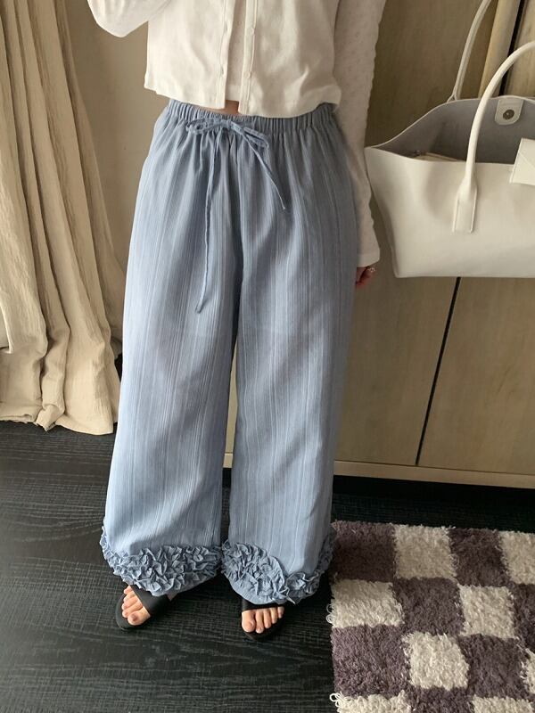 全2色 パンツ フリル 切り替え 体型カバー 着痩せ カジュアル
